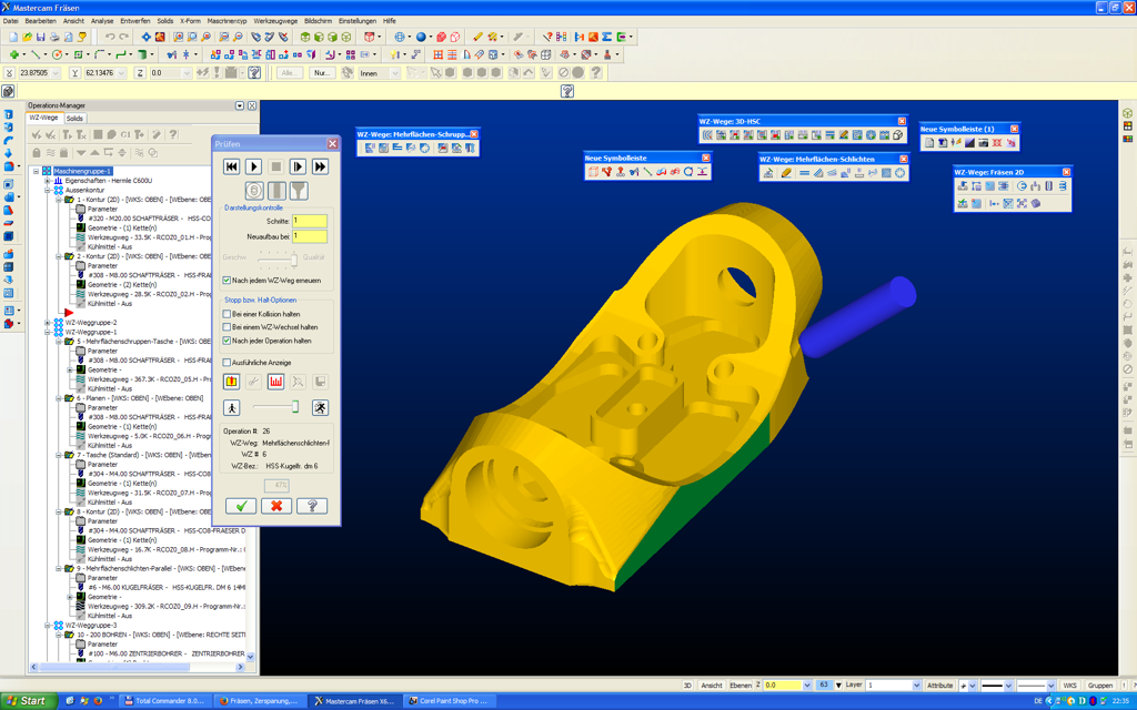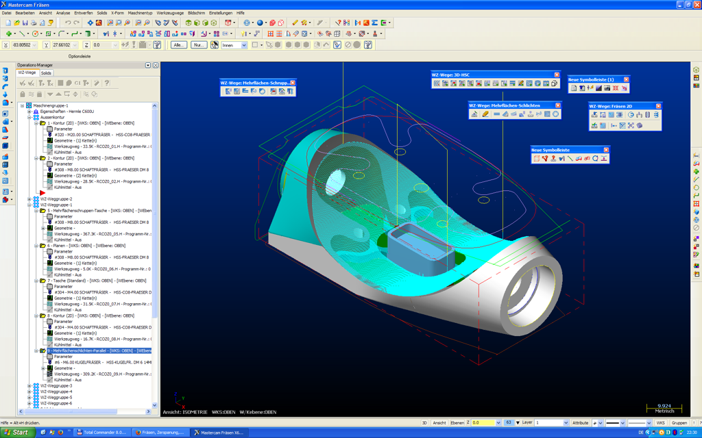 Die Fertigung erfolgt wahlweise auf einem 5-Achs CNC-Bearbeitungszentrum Hermle C600U oder Hermle C400. Die NC-Programme für unsere Bearbeitungszentren werden dabei mit Mastercam 2021 erstellt. Damit ist es möglich, auch komplizierte Bearbeitungsaufgaben zu erfüllen.
